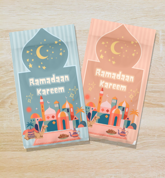 5pk of Ramadaan Gift Packets perfect for filling with sweets or dates for the kids. These come in blue and pink variations. All you need to do is fill it with your treats of choice, fold the flap, remove self-adhesive tape and seal.